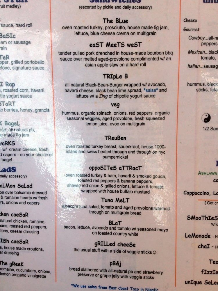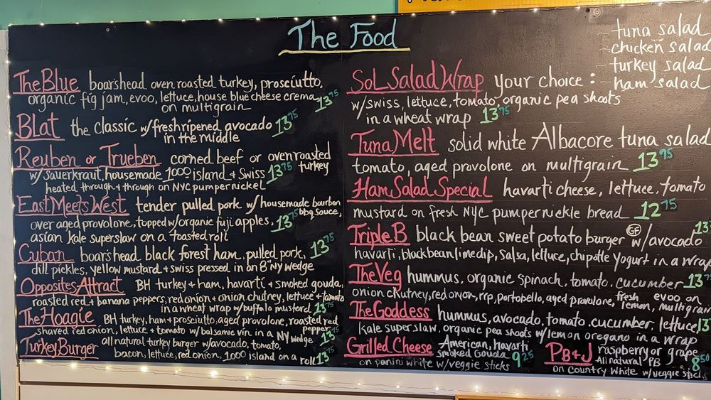 Introducing the menu at Cafe Sol, a cozy cafe in Niantic, CT, offering a wide range of options for breakfast, brunch, and lunch. Enjoy the vibrant ambiance with both indoor and outdoor seating options. Customer reviews rave about the delicious breakfast sandwiches on local bagels, with the option to sub wraps. The menu boasts many vegetarian and vegan options, including fresh salads and sandwiches made with quality bread and meats. Don't miss out on their specialty coffee drinks and refreshing beverages. Indulge in homemade treats like chocolate cookies and savory scones. Cafe Sol is the perfect spot to grab a quick bite for the beach or enjoy a leisurely meal with friends and family. Visit their new location for a memorable dining experience.